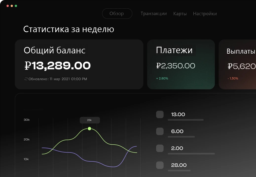 Удобная и детальная статистика в личном кабинете поможет вам контролировать все транзакции и улучшать продажи.